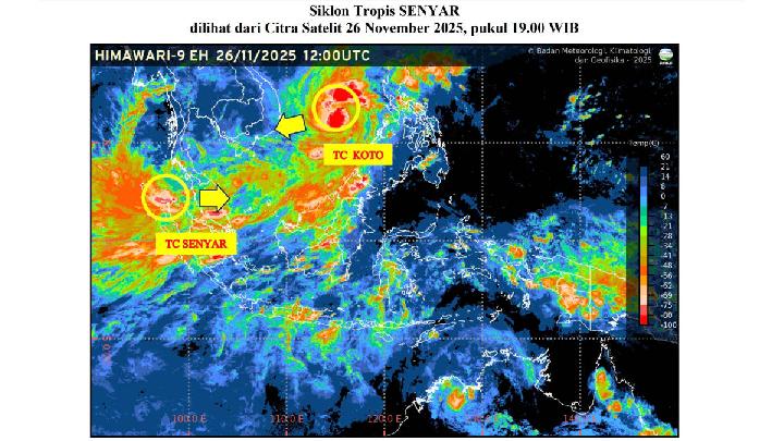 Info dari BMKG menyatakan Senyar yang sebelumnya tumbuh dari bibit siklon 95B ini bakal melemah menjadi depresi tropis. Prediksinya, kecepatan angin maksimum yang pada Rabu malam terpantau 65 km/jam akan berkurang menjadi 55 km/jam malam nanti.
