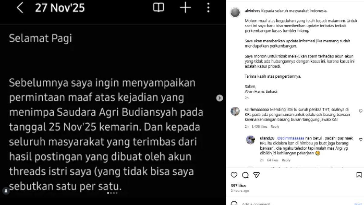 "Selamat pagi, sebelumnya saya ingin menyampaikan permohonan maaf atas kejadian yang menimpa saudara Argi Budiansyah pada tanggal 25 November 2025 kemarin.