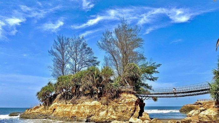 Saat melewati jembatan, kamu bisa merasakan angin laut yang segar dan ombak yang menabrak batu karang di bawahnya, menciptakan pengalaman liburan yang unik.