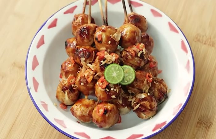 · Sate bakso dengan tusuk sate