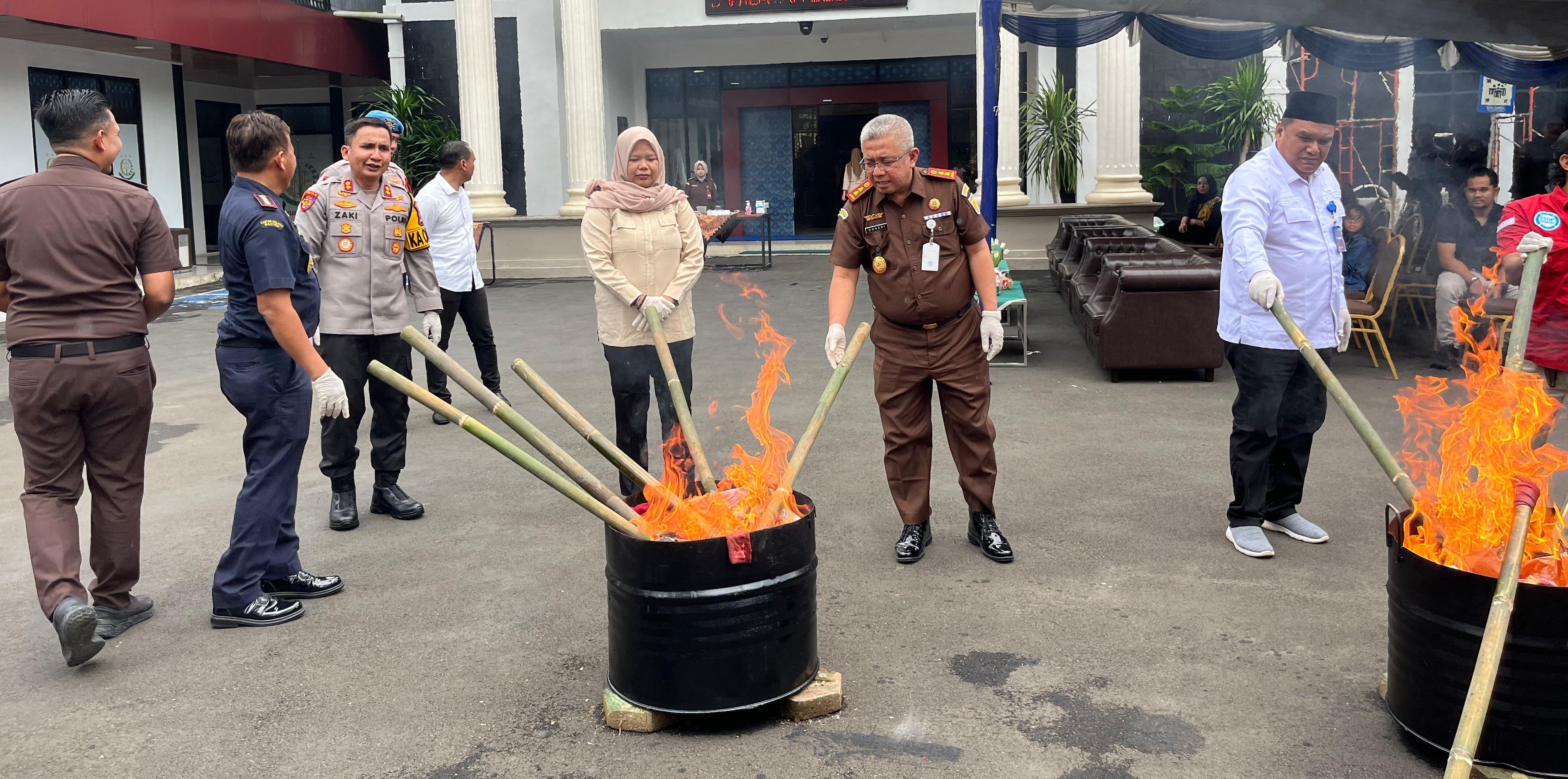 "Ya, penghancuran berbagai jenis barang bukti yang telah memiliki kekuatan hukum dari pengadilan ini dari 37 perkara," ujar Kepala Kejaksaan Negeri (Kajari) Lebak, Onneri Khairoza.