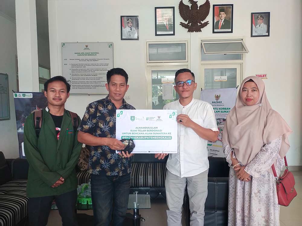 BENGKALIS (Bengkalispos.com.CO) – Forum Jurnalis Riau Pos Group (FJRPG) bekerja sama dengan Dewan Mahasiswa Institut Syariah Negeri Junjungan (Dema ISNJ) Bengkalis menyalurkan bantuan bagi para korban bencana di wilayah Sumatera melalui Badan Amil Zakat Nasional (Baznas) Kabupaten Bengkalis. Bantuan ini diperoleh dari pengumpulan dana saat pelaksanaan Bazar UMKM.