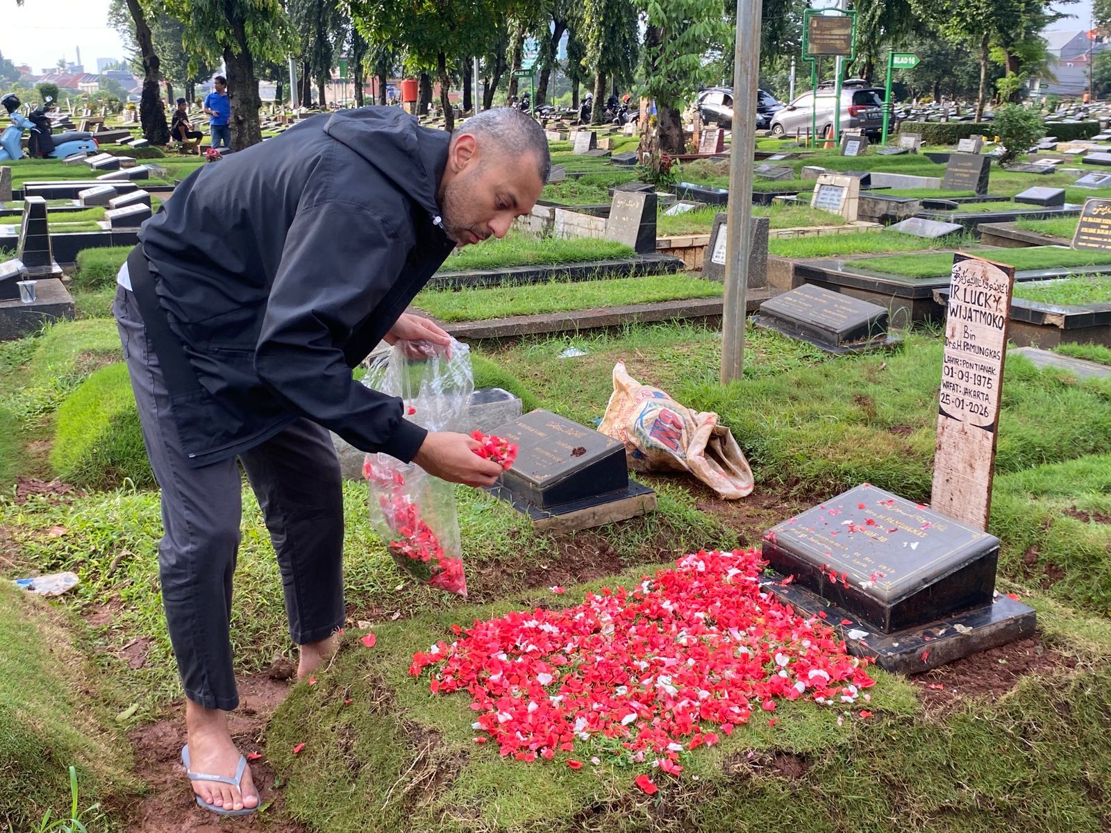 "Baru bisa tiba, hari ini baru kembali dari umrah," kata Didi Riyadi di depan makam Lucky Widja pada Kamis (29/1/2026).