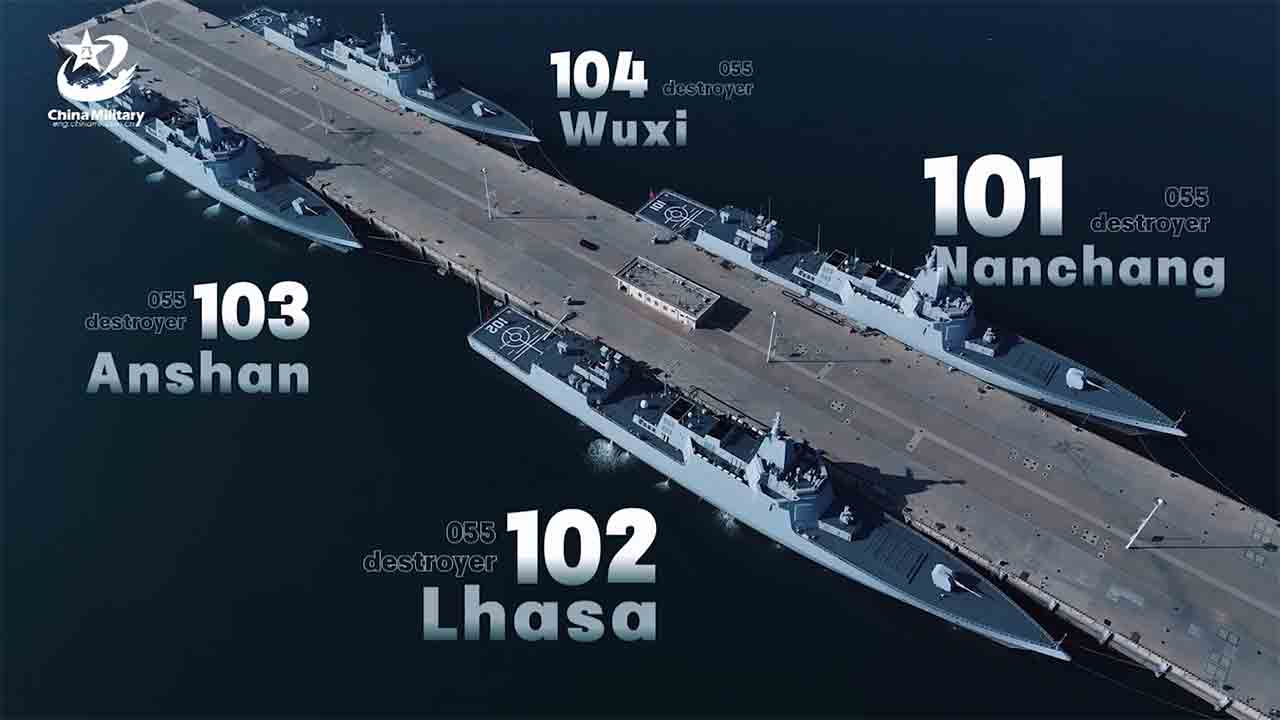 Laporan media Tiongkok menampilkan empat kapal perusak rudal terpandu Tipe 055 — Nanchang (lambung 101), Lhasa (102), Anshan (103), dan Wuxi (104) — yang bergerak dalam formasi selama latihan laut pertama tahun 2026 Angkatan Laut Tentara Pembebasan Rakyat di Laut Kuning.