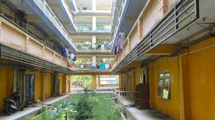 "Saya sudah sepuluh tahun tinggal di sini. Jadi setiap lantai terdiri dari 24 unit. Tidak semua terisi. Penduduk yang tinggal di sini adalah tukang becak, tukang bangunan dan sebagainya," kata Yati yang tinggal bersama suami dan dua anaknya.