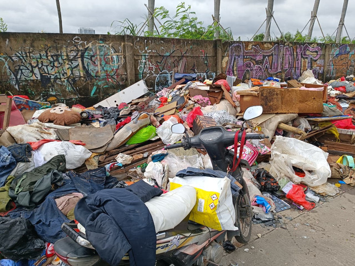 Di lokasi, sejumlah warga sedang mengangkat tumpukan sampah. Mencoba memilah barang atau pakaian yang masih bisa digunakan.