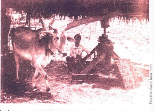Konstruksi mesin penggiling tebu pada masa itu tergolong sederhana. Dua tabung kayu ditempatkan dalam posisi tegak lurus, berputar dengan bantuan seekor lembu melalui sistem roda gigi dan poros yang panjangnya lima belas kaki (sekitar 4,5 meter). Tebu kemudian dimasukkan antara kedua tabung kayu tersebut, lalu diperas dua kali agar diperoleh air tebu sebanyak mungkin.