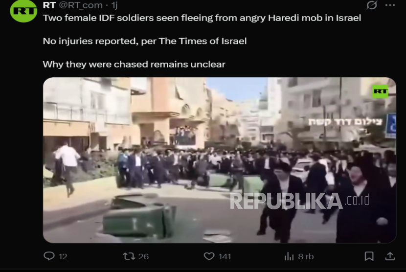 bengkalispos.com.CO.ID, TEL AVIV -- Dua prajurit perempuan Israel (IDF) ditgejar oleh sekelompok pria Haredi di Bnei Brak sebelum akhirnya dibawa oleh polisi.