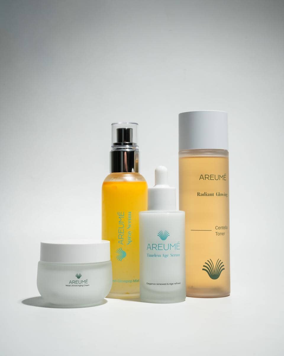 Pada tahap awal peluncuran, AREUMÉ Beauty memperkenalkanAnti-Aging Seriesyang dirancang untuk memenuhi kebutuhan kulit wanita yang ingin menjaga elastisitas, kelembapan, dan penampilan yang terlihat muda. Koleksi ini terdiri daritoner, serum, spray serum, sampai moisturizer.