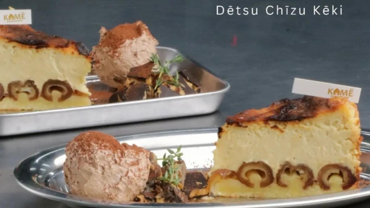 KAME Bakehouse terkenal dengan hidangan chizudon yang menyajikan kue keju dalam bentuk rice bowl yang menarik.