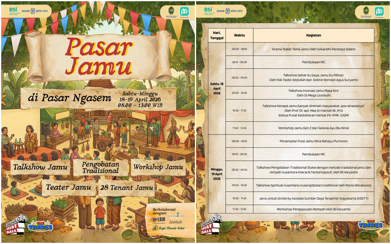 Mengusung tema "Ngobrol Sehat", acara ini akan mengubah wajah Pasar Ngasem menjadi pusat pembelajaran dan perayaan warisan obat tradisional Nusantara pada 18–19 April 2026.