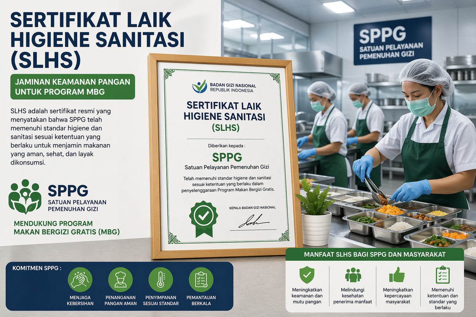 Misalnya, memiliki SK penunjukan atau surat keputusan verifikasi lanjutan dari Badan Gizi Nasional (BGN).